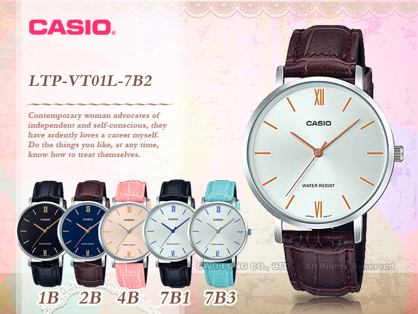 LTP-VT01L-7B2 CASIO 簡約指針女錶 皮革錶帶 銀白錶面 棕色錶帶 日常生活防水
