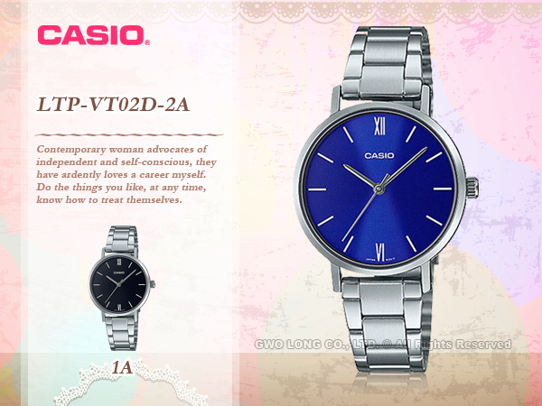 LTP-VT02D-2A CASIO 簡約時尚女錶 不鏽鋼錶帶 藍色錶面 日常生活防水 LTP-VT02D