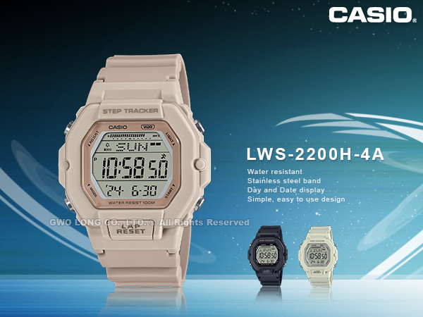 LWS-2200H-4A CASIO 卡西歐 運動電子錶 淡粉色 計步功能 200組記憶 防水100米 LWS-2200H