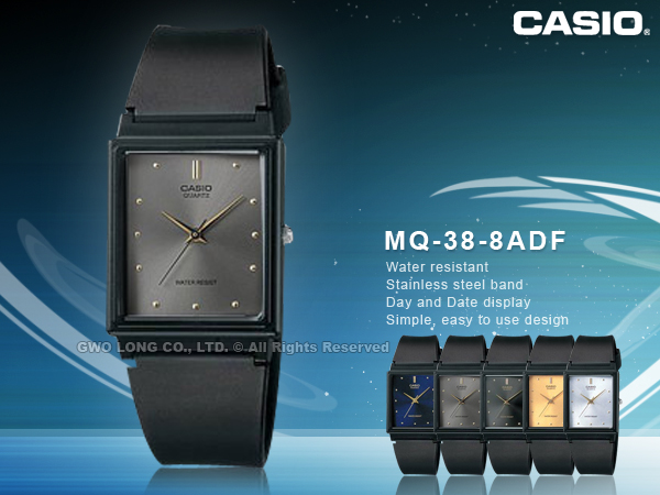 MQ-38-8ADF CASIO 指針錶 橡膠錶帶 生活防水