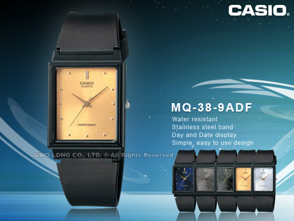MQ-38-9ADF CASIO 指針錶 橡膠錶帶 生活防水