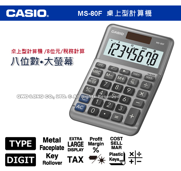 MS-80F CASIO 小型桌上型計算機 8 位數字 稅務計算