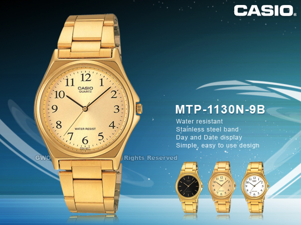 MTP-1130N-9B CASIO 指針錶 不鏽鋼錶帶 礦物玻璃 生活防水