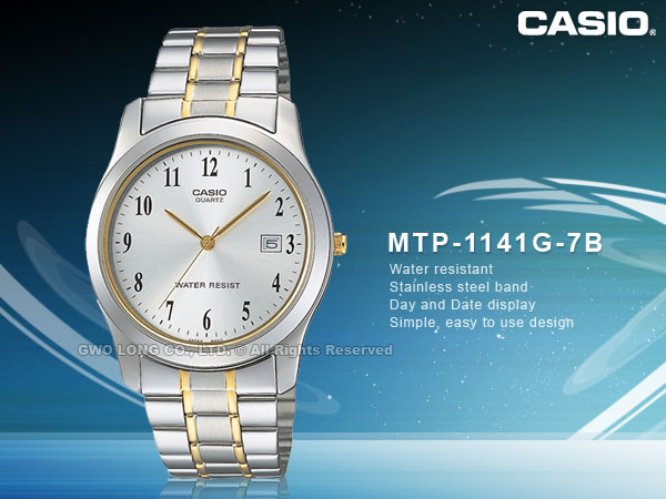 MTP-1141G-7B CASIO 指針男錶 不鏽鋼錶帶 礦物玻璃 生活防水