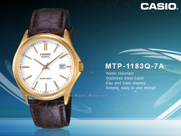 MTP-1183Q-7A CASIO 指針錶 皮革錶帶 生活防水 礦物玻璃