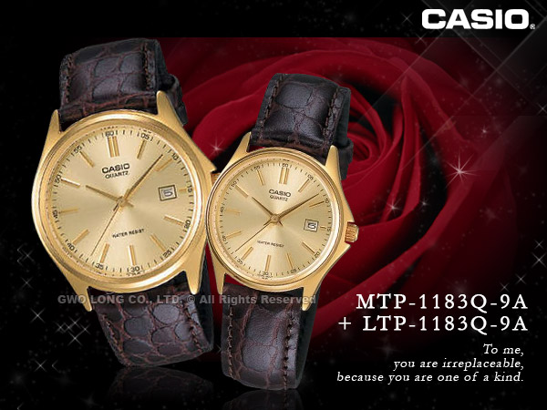 MTP-1183Q-9A+LTP-1183Q-9A CASIO 指針對錶 皮革錶帶 生活防水 礦物玻璃