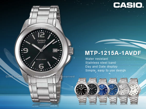 MTP-1215A-1A CASIO 指針錶 不鏽鋼錶帶 生活防水 礦物玻璃