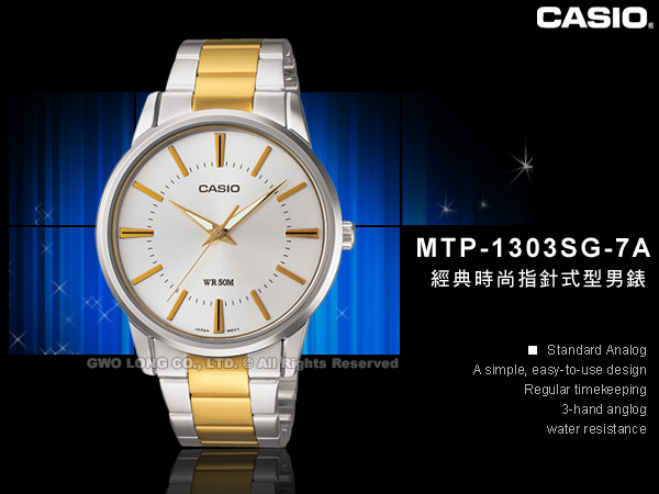 MTP-1303SG-7A CASIO 指針錶 不鏽鋼錶帶 礦物玻璃 防水50米