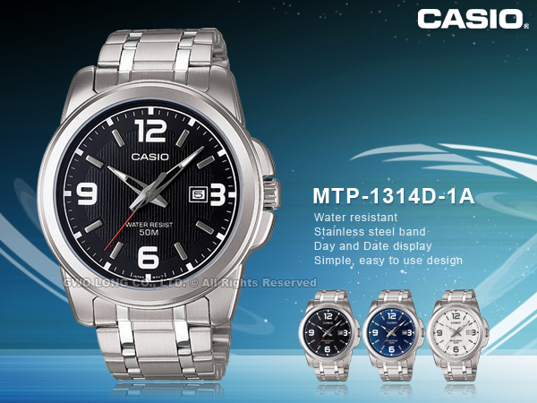MTP-1314D-1A CASIO 指針錶 不鏽鋼錶帶 50米防水 礦物玻璃