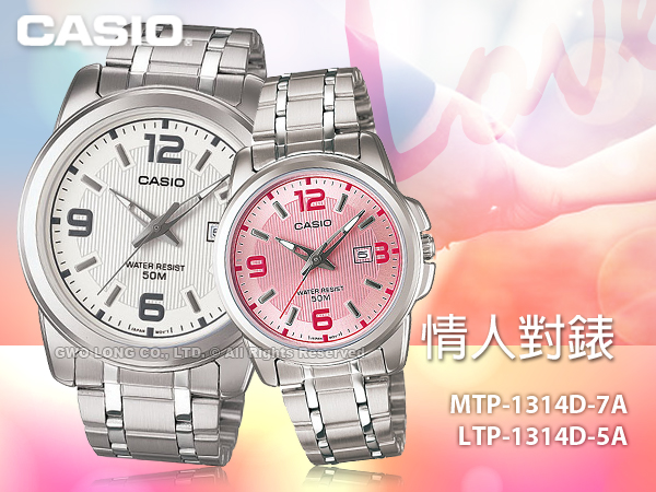 MTP-1314D-7A+LTP-1314D-5A CASIO 指針錶 不鏽鋼錶帶 50米防水 礦物玻璃