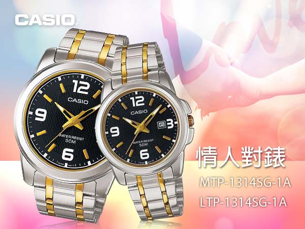 MTP-1314SG-1A+LTP-1314SG-1A CASIO 指針錶 不鏽鋼錶帶 礦物玻璃 日常防水 日期顯示