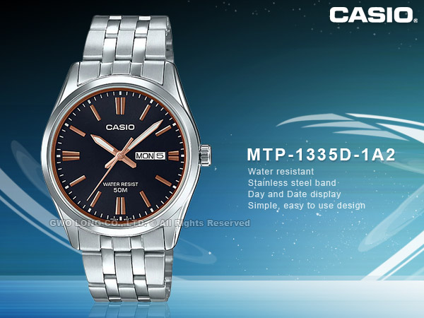 MTP-1335D-1A2 CASIO 時尚石英男錶 不鏽鋼錶帶 黑x玫瑰金 防水50米