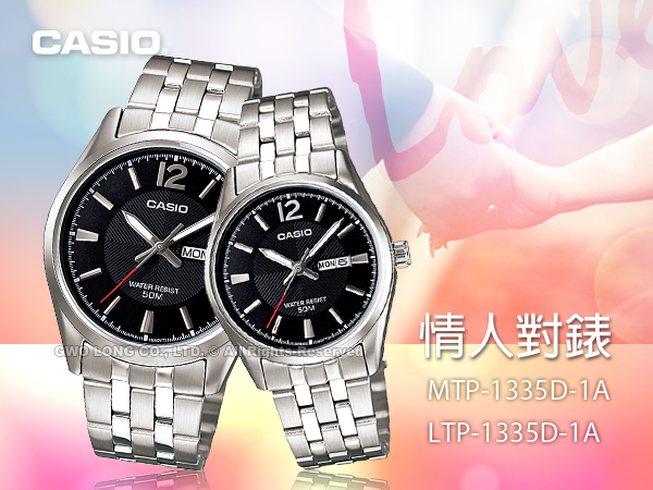 MTP-1335D-1A+LTP-1335D-1A CASIO 指針對錶 不鏽鋼錶帶 礦物玻璃 防水50米 日期顯示