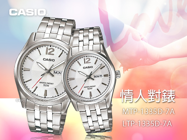 MTP-1335D-7A +LTP-1335D-7A CASIO 指針對錶 不鏽鋼錶帶 礦物玻璃 防水50米 星期日期顯示
