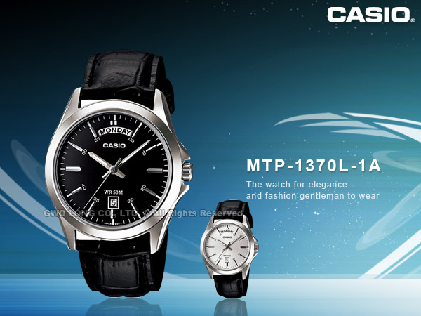 MTP-1370L-1A CASIO 指針男錶 皮革錶帶 日期/星期顯示 防水50米 礦物玻璃