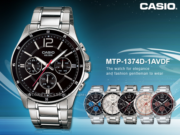 MTP-1374D-1A CASIO 指針錶 不鏽鋼錶帶 礦物玻璃 防水50米