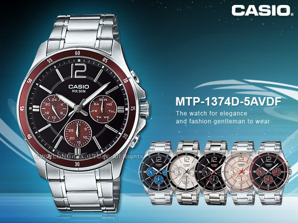 MTP-1374D-5AVDF CASIO 指針錶 不鏽鋼錶帶 礦物玻璃 防水50米