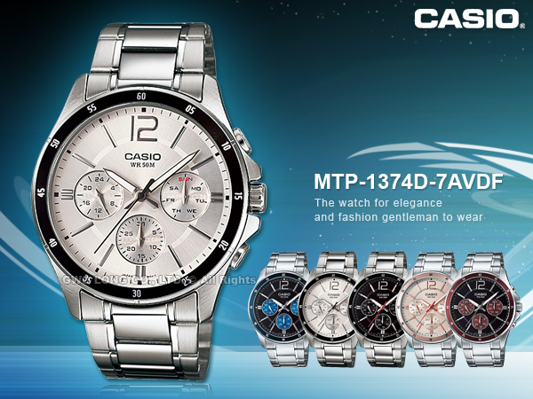 MTP-1374D-7AVDF CASIO 指針錶 不鏽鋼錶帶 礦物玻璃 防水50米