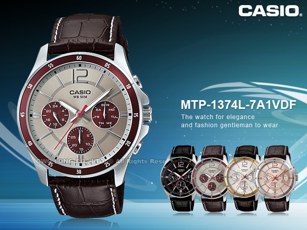 MTP-1374L-7A1VDF CASIO 指針錶 皮革錶帶 礦物玻璃 防水50米