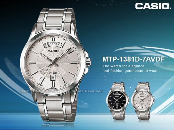 MTP-1381D-7AVDF CASIO 時尚簡約指針男錶 不鏽鋼錶帶 銀白色 防水50米