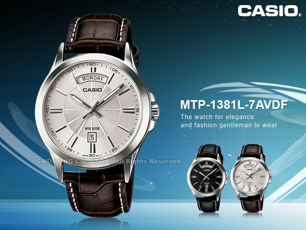 MTP-1381L-7A CASIO 簡約時尚男錶 皮革錶帶 米白 防水50米