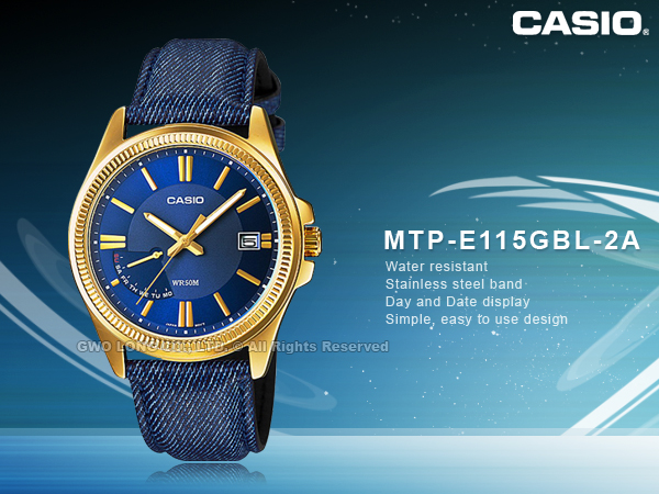 MTP-E115GBL-2A CASIO 指針錶 皮革錶帶 生活防水 礦物玻璃 日期星期顯示