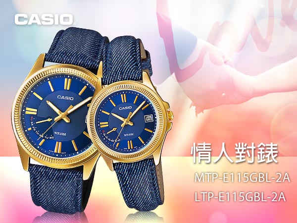 MTP-E115GBL-2A+LTP-E115GBL-2A CASIO 指針錶 皮革錶帶 生活防水 礦物玻璃 日期星期顯示