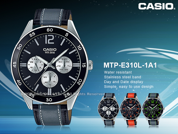 MTP-E310L-1A1 CASIO 指針錶 皮革錶帶 防水50米 礦物玻璃