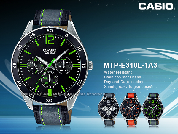 MTP-E310L-1A3 CASIO 指針錶 皮革錶帶 防水50米 礦物玻璃