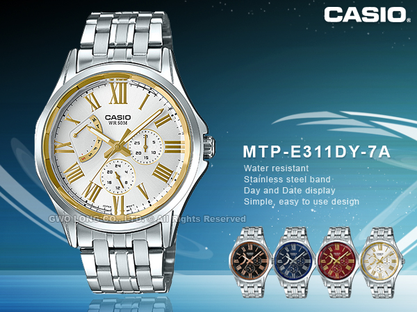 MTP-E311DY-7A CASIO 指針錶 不鏽鋼錶帶 防水50米 礦物玻璃