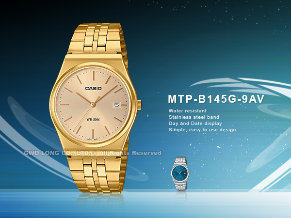 MTP-B145G-9A CASIO 金典復古 指針男錶 不鏽鋼錶帶 防水50米 MTP-B145G-9A