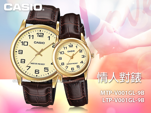 MTP-V001GL-9B+LTP-V001GL-9B CASIO 指針錶 皮革錶帶 生活防水 礦物玻璃