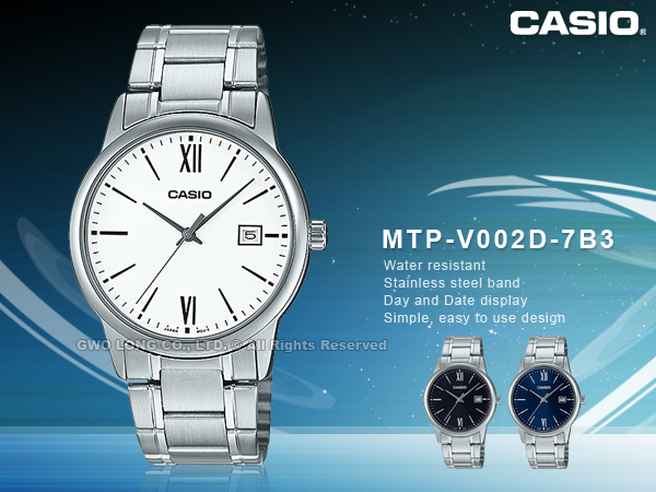 MTP-V002D-7B3 CASIO 指針錶 不鏽鋼錶帶 生活防水 礦物玻璃 MTP-V002D
