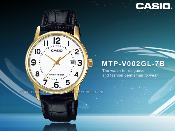 MTP-V002GL-7B CASIO 指針錶 皮革錶帶 生活防水 礦物玻璃