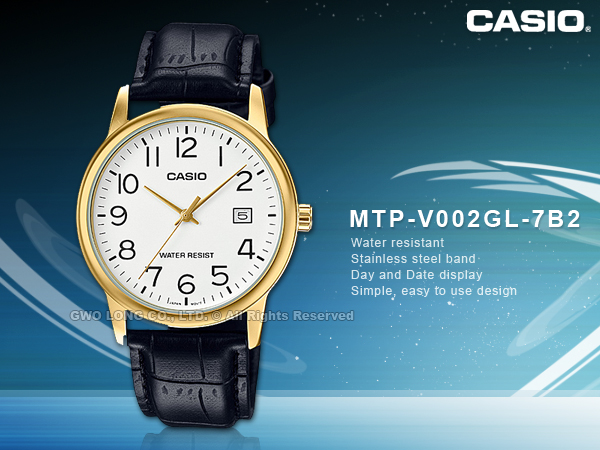MTP-V002GL-7B2 CASIO 指針錶 皮革錶帶 生活防水 礦物玻璃