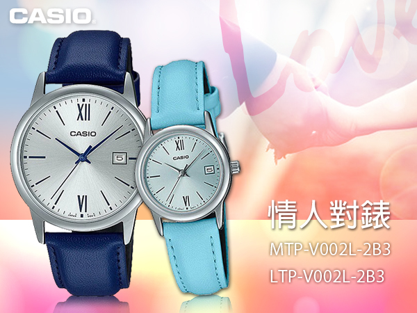 MTP-V002L-2B3+LTP-V002L-2B3 CASIO 指針對錶 皮革錶帶 生活防水 礦物玻璃 MTP-V002L