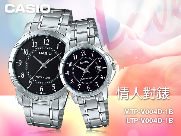 MTP-V004D-1B+LTP-V004D-1B CASIO 指針對錶 不鏽鋼錶帶 生活防水 礦物玻璃