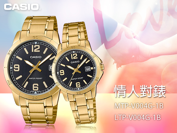 MTP-V004G-1B + LTP-V004G-1B CASIO 甜蜜情侶指針石英錶 不鏽鋼錶帶 日常生活防水 日期顯示