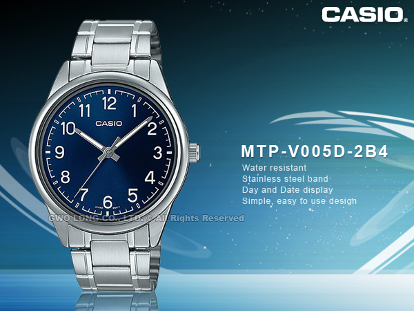 MTP-V005D-2B4 CASIO 指針男錶 不鏽鋼錶帶 藍 生活日常防水 MTP-V005D