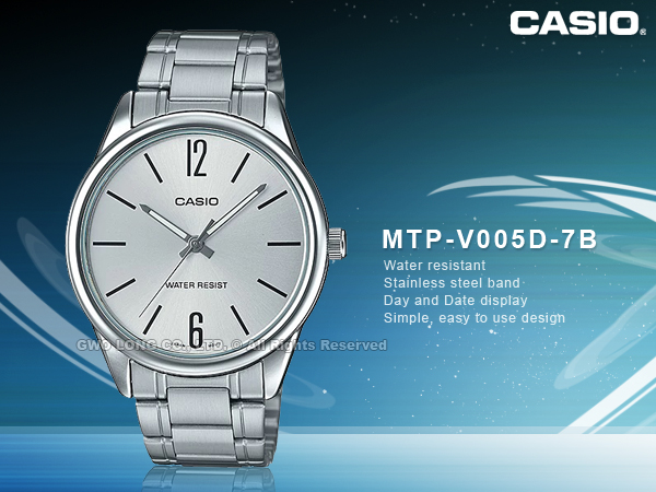 MTP-V005D-7B CASIO 指針錶 不鏽鋼錶帶 生活防水 礦物玻璃