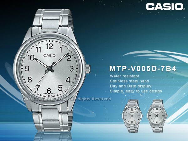 MTP-V005D-7B4 CASIO 指針男錶 不鏽鋼錶帶 生活日常防水 MTP-V005D