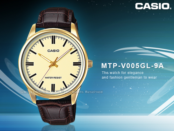 MTP-V005GL-9A CASIO 指針錶 皮革錶帶 生活防水 礦物玻璃