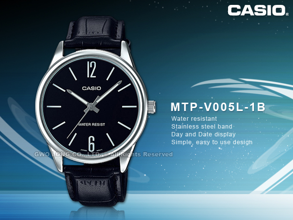 MTP-V005L-1B CASIO 指針錶 皮革錶帶 生活防水 礦物玻璃