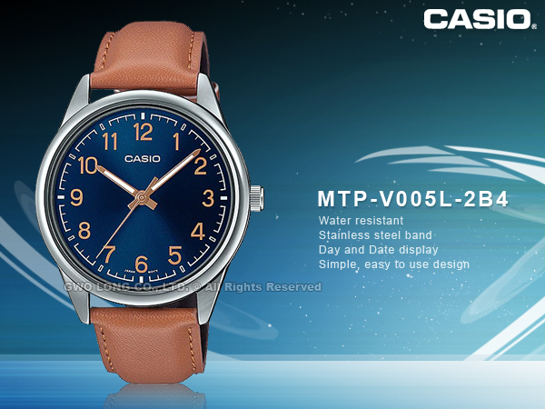 MTP-V005L-2B4 CASIO 指針錶 皮革錶帶 藍 生活防水 礦物玻璃 MTP-V005L