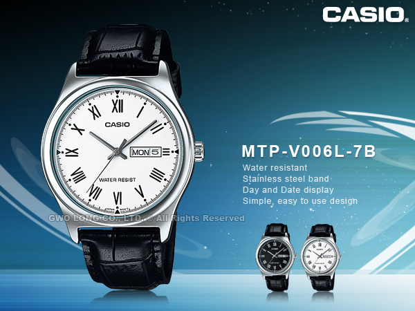 MTP-V006L-7B CASIO 指針錶 皮革錶帶 生活防水 礦物玻璃