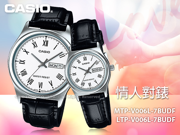 MTP-V006L-7B+LTP-V006L-7B CASIO 指針錶 皮革錶帶 生活防水 礦物玻璃
