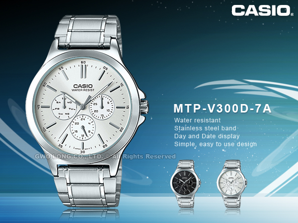 MTP-V300D-7A CASIO 指針錶 不鏽鋼錶帶 生活防水 礦物玻璃