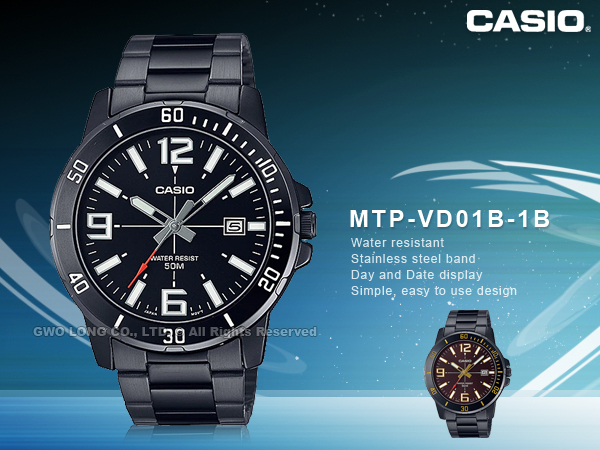 MTP-VD01B-1B CASIO 指針男錶 不鏽鋼錶帶 生活防水 日期顯示 MTP-VD01B