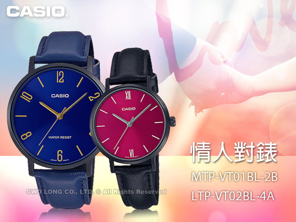 MTP-VT01BL-2B+LTP-VT02BL-4A CASIO 指針對錶 皮革錶帶 生活防水 LTP-VT02BL