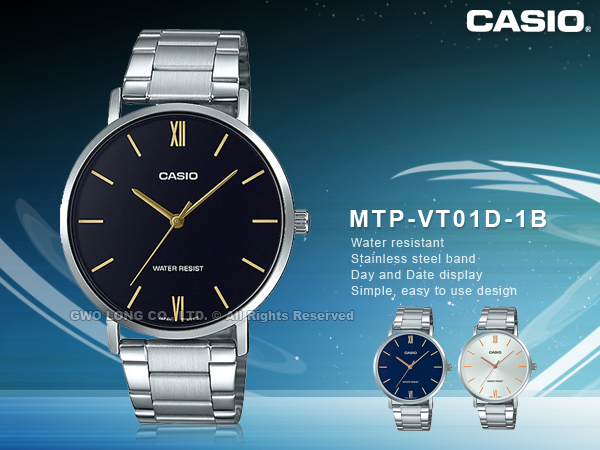 MTP-VT01D-1B CASIO 簡約丁字時尚男錶 不鏽鋼錶帶 黑色錶面 日常生活防水
